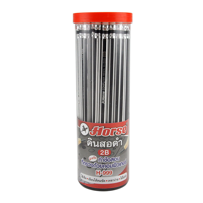 ดินสอดำ ความเข้มไส้ดินสอ 2B เหลาพร้อมใช้ ผลิตจากไม้เนื้ออ่อน เหลาง่าย เขียนลื่นไส้ไม่เปราะ ด้ามจับทรงหกเหลี่ยมจับถนัดมือ ใช้ระบายบนกระดาษข้อสอบที่ตรวจด้วยคอมพิวเตอร์ได้ มียางลบที่ปลายด้าม บรรจุ 50 แท่ง/กระป๋อง