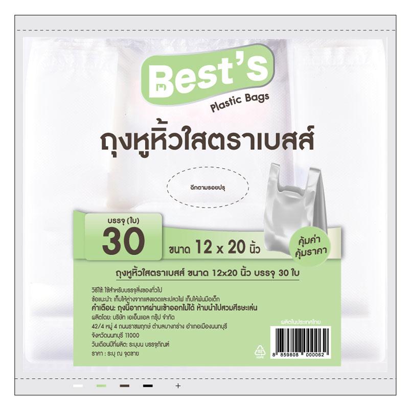 เบสส์ ถุงหูหิ้วใส 12x20 นิ้ว 30 ถุง