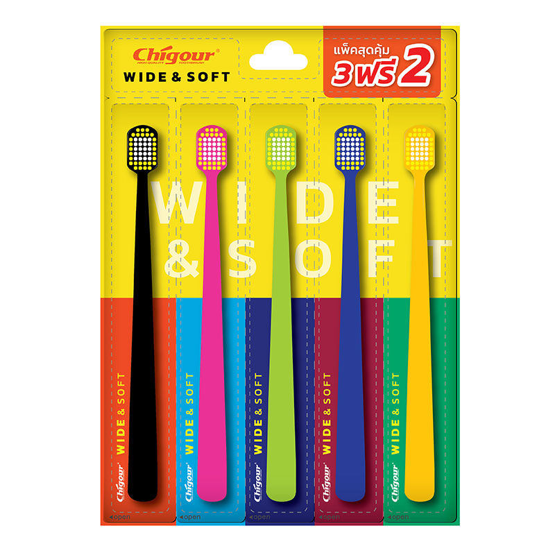 ชีกัวร์ แปรงสีฟัน ไวด์&ซอฟท์ x 3+2