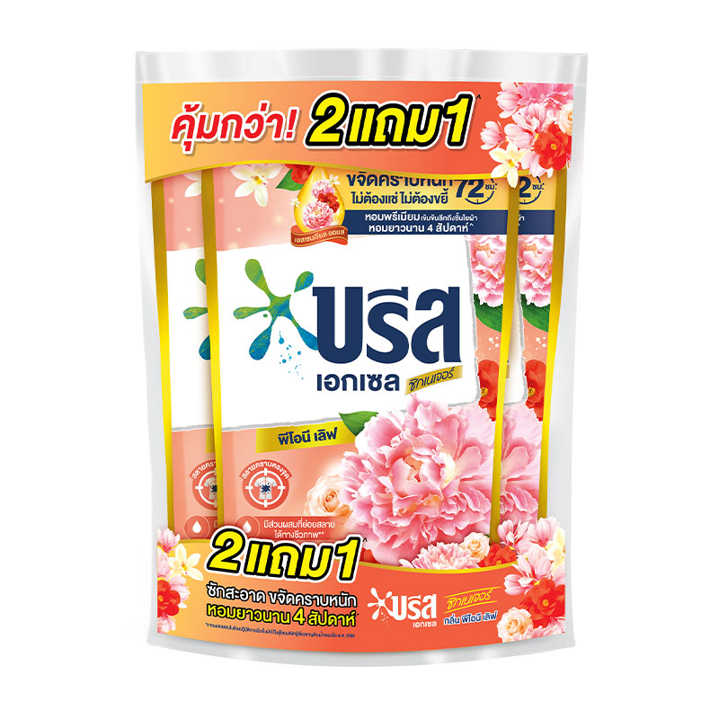 - ชื่อสินค้า: บรีส เอกเซล น้ำยาซักผ้า พีโอนี 650 มล. x 2+1 - แบรนด์: บรีส - ปริมาณบรรจุ: 3 หน่วย