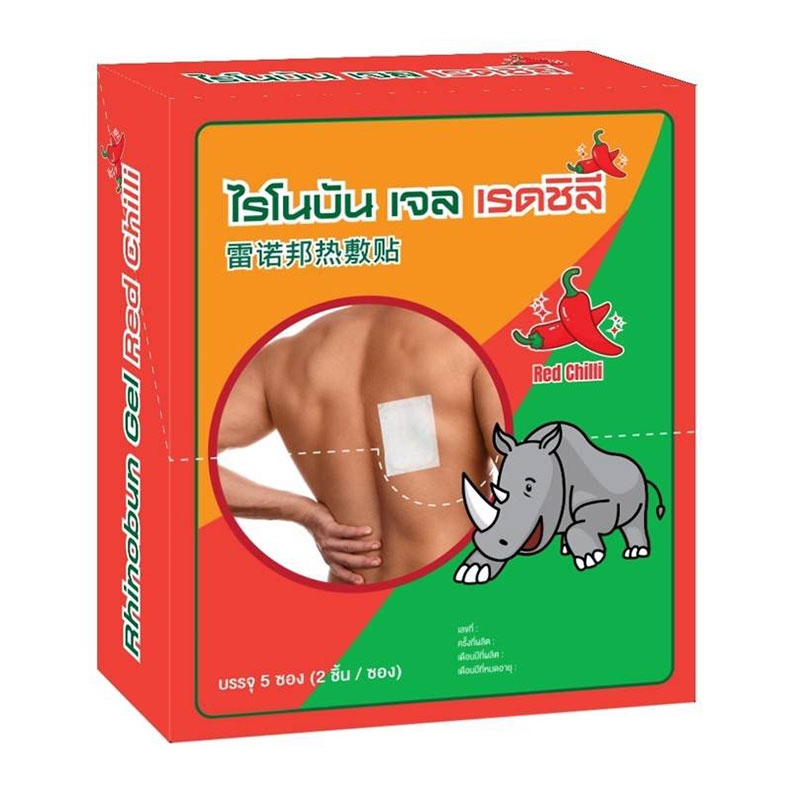 - ชื่อสินค้า: ไรโนบัน เจลเรดชิลี่ 2 ชิ้น/ซอง 5 ซอง - แบรนด์: ไรโนบัน - ปริมาณบรรจุ: 1 หน่วย