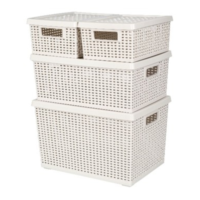 ชุดตะกร้าลายหวาย รุ่น 93126 สีครีม/ฟ้า