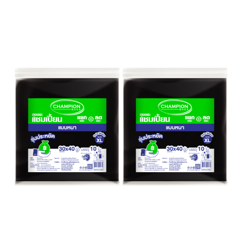 แชมเปี้ยน ถุงขยะเนื้อหนา 30x40 นิ้ว 1 แถม 1