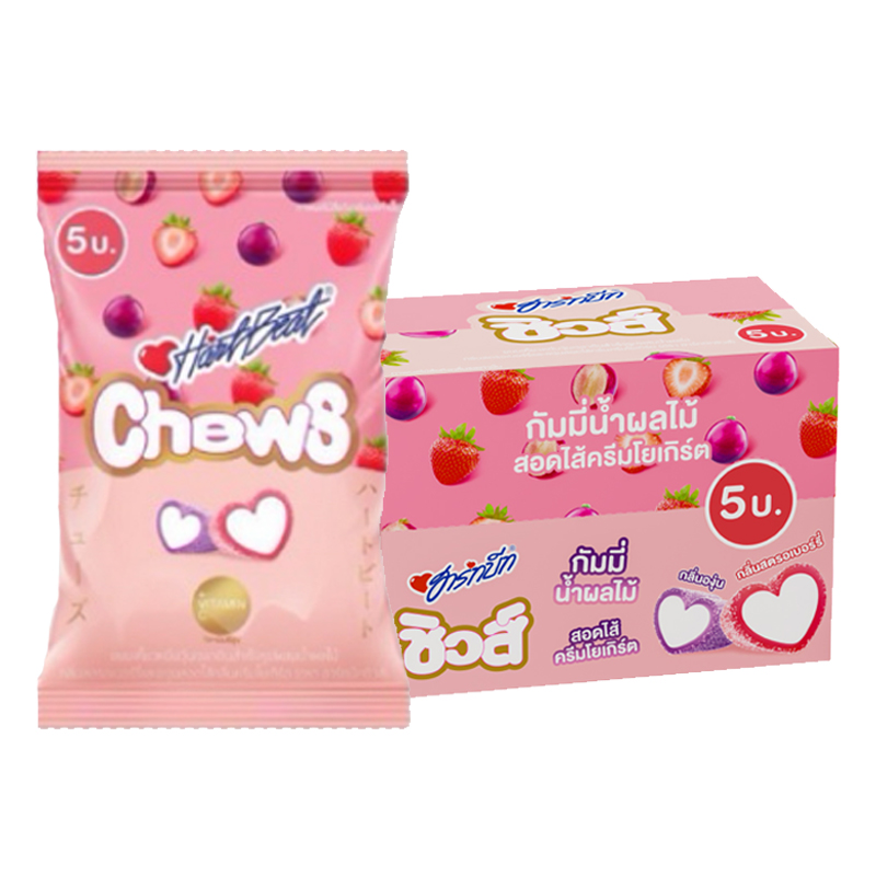 ฮาร์ทบีท ชิวส์ กัมมี่น้ำผลไม้ กลิ่นสตรอเบอร์รีและองุ่น 18 ก. x 12