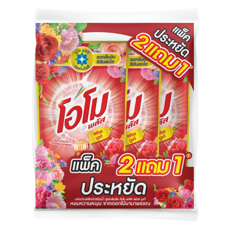 - ชื่อสินค้า: โอโม พลัส น้ำยาซักผ้าชนิดน้ำสูตรเข้มข้น กลิ่นเฟรชบูเก้ 700 มล. x 2+1 - แบรนด์: โอโม - ปริมาณบรรจุ: 3 หน่วย