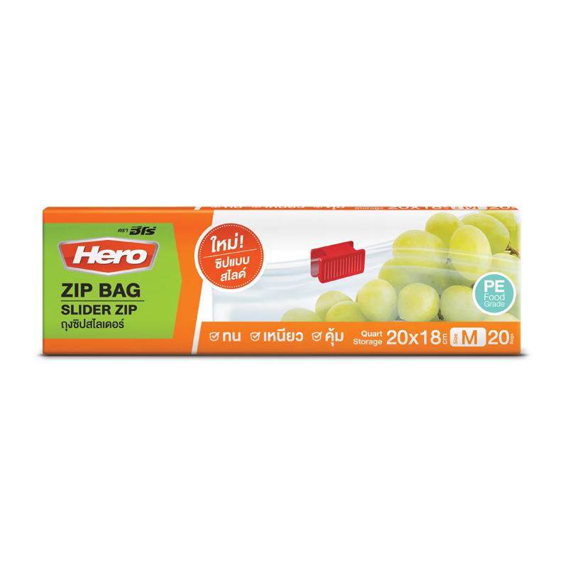 ฮีโร่ ถุงซิปสไลด์ 20 x 18 ซม. 20 ใบ