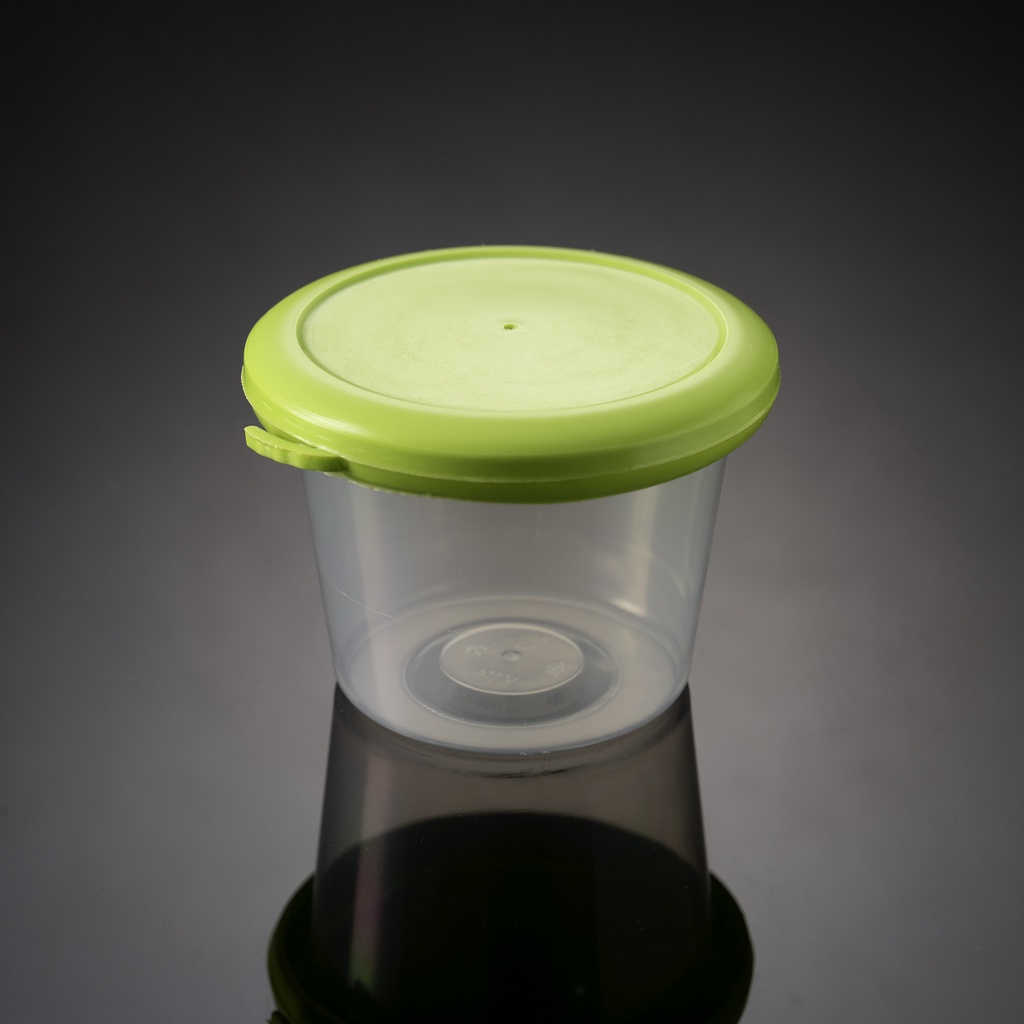 วัสดุ (Material) : ตัว PP ฝา PE ขนาด (Size) : DIA. 7.2 cm. (ขนาดเส้นผ่าศูนย์กลางปากถ้วย) x สูง(H) 5.1 cm. ความจุ (Capacity) : 4 Oz., 100 ml. บรรจุห่อละ (PCS/Pack) : 20 ชิ้น บรรจุลังละ (Pack/Box) : 25 ห่อ