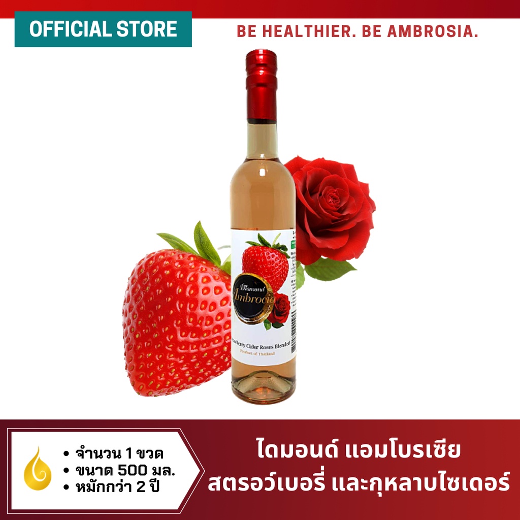 ไดมอนด์ แอมโบรเซีย สตรอว์เบอร์รี่และดอกกุหลาบ ไซเดอร์ 500 มล. จำนวน 1 ขวด