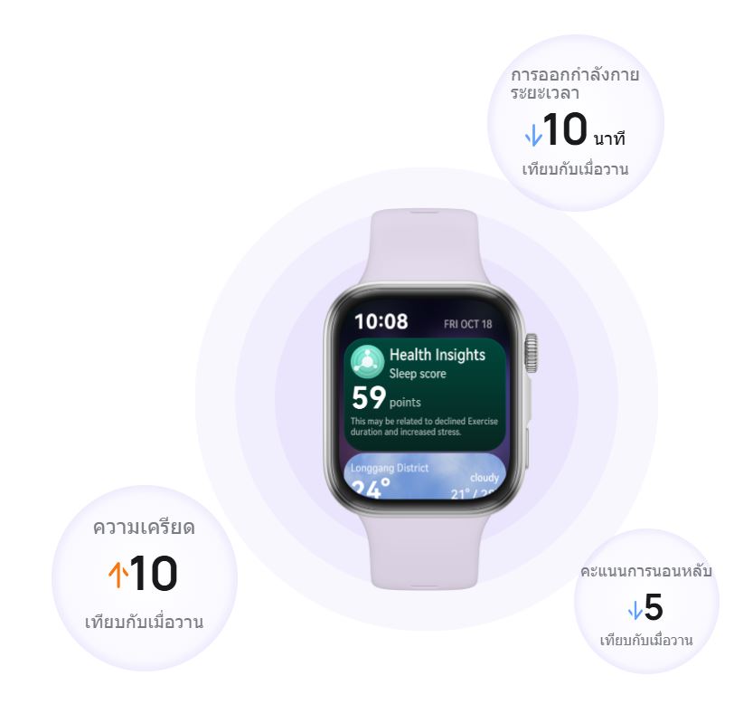 สัมผัสประสบการณ์ใหม่กับแอป Health Insights ที่เปิดตัวครั้งแรกใน HUAWEI WATCH FIT 4 Series เพื่อการดูแลสุขภาพอย่างรอบด้าน ตั้งแต่เคล็ดลับการจัดการความเครียด คำแนะนำในการนอนหลับที่ดีขึ้น ไปจนถึงการปรับปรุงประสิทธิภาพการออกกำลังกายอย่างตรงจุด