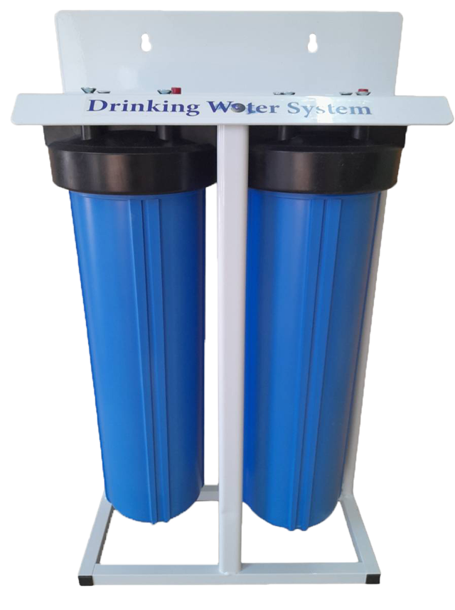 เครื่องกรองน้ำ 2 Column 20 นิ้ว Big-blue พร้อมไส้กรอง 2 ไส้คุณสมบัติตัวกระบอกมีขนาดใหญ่ สามารถบรรจุไส้กรองขนาด ศก. 4.5" x ยาว 20" ทำมาจากวัสดุ PE (Polyethylene) ฝาด้านบน (CAP) มีสีดำ ทำมาจากวัสดุ PE (Polyethylene) มีปุ่มระบายแรงดันที่ฝาด้านบนทางน้ำเข้า-ออก เป็นเกลียวในขนาด 1" ส่วนใหญ่ใส้กรองจะใช้ PP กับ CTO เส้นผ่านศูนย์กลางขนาด 4.5" หรือ จะใช้เลือกใช้ใส้กรองชนิดอื่นก็ได้ตามความเหมาะสม และยังสามารถกรองน้ำได้ถึง 400-500 ลิตร/ชม.1.ไส้กรองPPประกอบด้วยเส้นใยสังเคราะห์ Polypropyleneพันทับกันหลายชั้นขนาดความละเอียด 5 ไมครอนกรองสิ่งสกปรกที่มากับน้ำ ตะกอนหยาบ สารแขวนลอย เช่น โคลน ทราย สนิม เหล็ก ตะไคร่น้ำ(ระยะเวลาการเปลี่ยนไส้กรอง 5-6 เดือนขึ้นกับคุณภาพน้ำดิบและปริมาณการใช้น้ำ2.ไส้กรอง CTO เป็นการหลอมผงคาร์บอนและอัดแน่น เป็นเนื้อเดียวกันทำให้มีประสิทธิภาพในการกรองสูงกว่าคาร์บอนทั่วไป จะกรองเอา กลิ่น , สี ,คลอรีน, สารอินทรีต่างๆที่ทำให้รสชาติของน้ำเปลี่ยนไป ผลิตจาก กะลามะพร้าว (ระยะเวลาการเปลี่ยนไส้กรอง 5-6 เดือนขึ้นกับคุณภาพน้ำดิบและปริมาณการใช้น้ำ