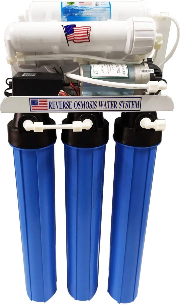 เครื่องกรองน้ำ 5 ขั้นตอน 20 นิ้ว RO.300 GPD เป็นการใช้แรงดันน้ำผ่านเยื่อเมมเบรน (membrane) ของระบบ RO ที่มีสามารถกรองได้ละเอียดถึง 0.0001 ไมครอน หรือเล็กกว่าเส้นผมถึง 500,000 เท่า สามารถกรองได้ถึงไอออน และโมเลกุลของสารละลายที่อยู่ในน้ำ ซึ่งจะทำให้ได้น้ำ RO หรือน้ำที่มีความบริสุทธิ์ การทำงานของระบบ RO น้ำจะไหลผ่านไส้กรอง 5 ไมครอน และเพิ่มความดันน้ำด้วยปั๊มแรงดันสูง (high pressure pump) เพื่อให้น้ำเข้าสู่ไส้เมมเบรน (membrane) แล้วแยกออกเป็น 2 ส่วน ได้แก่ น้ำบริสุทธิ์และน้ำเข้มข้น (น้ำทิ้ง)คุณสมบัติ - สามารถกรองได้ละเอียดถึง 0.0001 ไมครอน (1ไมครอน = 0.001 มิลลิเมตร) - ติดตั้งง่าย สดวกต่อการใช้งาน (มีคู่มือการติดตั้ง) - น้ำดื่มสะอาด ปลอดภัย - ใช้ระบบไฟฟ้าในการทำงาน - กำลังการผลิตน้ำ 1,100 ลิตร/วัน , กำลังการใช้น้ำ 270 ลิตร/ 8 ชั่วโมงคุณสมบัติไส้กรอง ขั้นตอนที่ 1ไส้กรองPPประกอบด้วยเส้นใยสังเคราะห์Polypropyleneพันทับกันหลายชั้นขนาดความละเอียด 5 ไมครอนกรองสิ่งสกปรกที่มากับน้ำ ตะกอนหยาบ สารแขวนลอย เช่น โคลน ทราย สนิม เหล็ก ตะไคร่น้ำ(ระยะเวลาการเปลี่ยนไส้กรอง 3-6 เดือนขึ้นกับคุณภาพน้ำดิบและปริมาณการใช้น้ำขั้นตอนที่ 2ไส้กรองCTOเป็นการหลอมคาร์บอนที่อุณภูมิสูง และนำมาอัดแน่นเป็นเนื้อเดียวกัน ทำให้ประสิทธิภาพสูงกว่าคาร์บอนทั่วไปจะกรองเอากลิ่น สี คลอรีน สารอินทรีย์ ต่างๆ (ระยะเวลาการเปลี่ยนไส้กรอง 5-6 เดือนขึ้นกับคุณภาพน้ำดิบและปริมาณการใช้ น้ำขั้นตอนที่ 3 ไส้กรอง Resin มีลักษณะเป็นเม็ดทรงกลมขนาดเล็กสีเหลืองสารกรองมีความชื้น ใช้หลักการทำงานแลกเปลี่ยนประจุระหว่างตัวสารกรองกับประจุในน้ำ เป็นชนิด Cation ทำหน้าที่กำจัดหรือจับสารละลายประจุบวก เช่น หินปูน เป็นต้น การใช้งาน สำหรับ กระบวรการ การกำจัดความกระด้าง หินปูน แคลเซียม แมกนีเซียม(ระยะเวลาการเปลี่ยนไส้กรอง 5-6 เดือนขึ้นกับคุณภาพน้ำดิบและปริมาณการใช้น้ำ ขั้นตอนที่ 4.ไส้กรองหลัก RO.(Reverse Osmosis)ด้วยไส้กรองที่มีความละเอียดถึง 0.0001 ไมครอน. ซึ่งสามารถกรองสารเคมี สารตะกั่ว ปรอท ยาฆ่าแมลง สารอินทรีย์ แบคทีเรีย ไวรัส สารก่อมะเร็งและสารละลายโดยนำเข้าจากต่างประเทศ ทำให้มั่นใจคุณภาพน้ำได้เป็นอย่างดี(ระยะเวลาการเปลี่ยนไส้กรอง 12-24 เดือนขึ้นกับคุณภาพน้ำดิบและปริมาณการใช้น้ำ ขั้นตอนที่ 5.ไส้กรอง Post Carbon ทำหน้าที่ปรับรสชาติน้ำ และกำจัดสารเคมีที่เป็นโทษต่อ ร่างกายเช่น ยาฆ่าแมลง TCM, THM, BENZENE, LEAD, CHLORAMINE ฯลฯ(ระยะเวลาการเปลี่ยนไส้กรอง 5-6 เดือนขึ้นกับคุณภาพน้ำดิบและปริมาณการใช้น้ำ