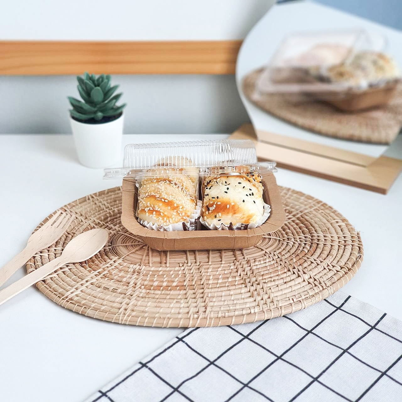 Single milk box, small size, craft color - Kraft paper Food Grade - Width 10 x length 13 x height 6.5 cm (including 3 cm high) - For adding desserts