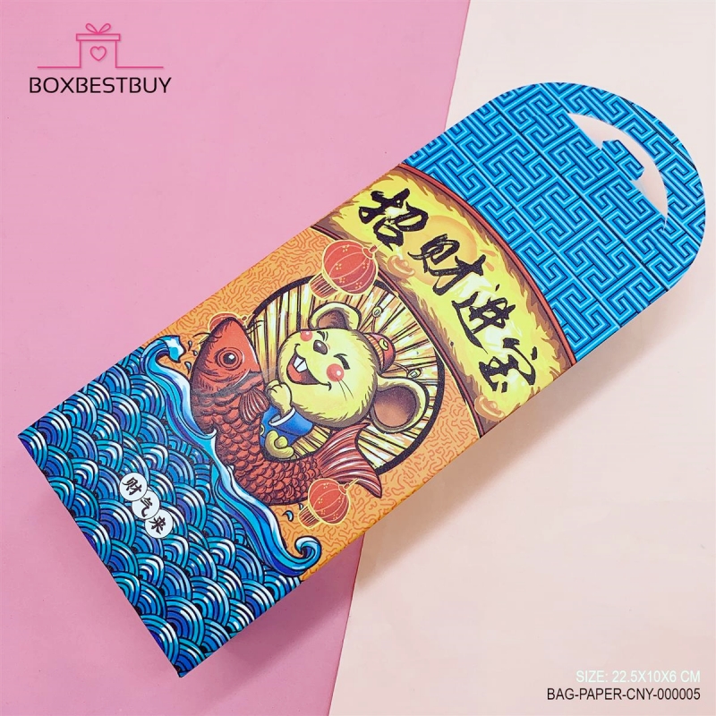 ถุงของขวัญลาย หนูจีนขี่ปลา ขนาด 22.5 x 10 x 6 ซม. แพคละ 10 ใบ