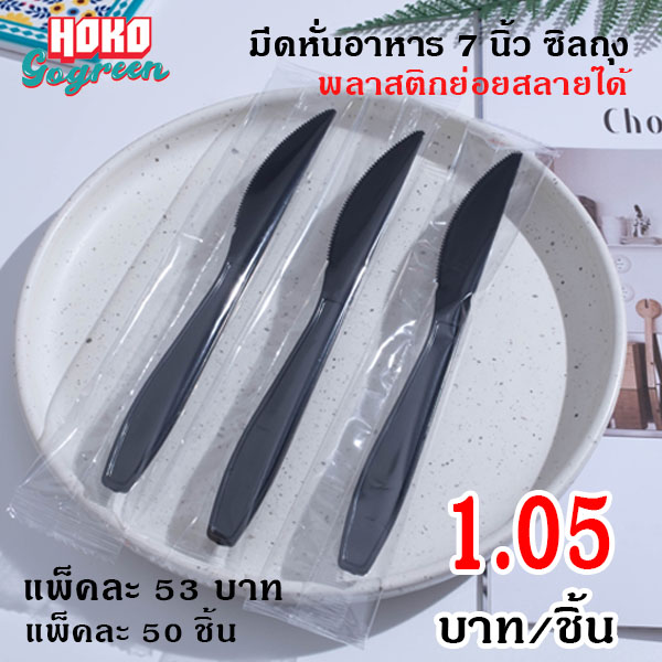มีดพลาสติก สีดำ ซิลถุงทุกชิ้น (กล่อง 1,000 ชิ้น) มีดสีพาสเทล มีดพลาสติกย่อยสลาย มีดใช้แล้วทิ้ง มีดสีสันสดใส