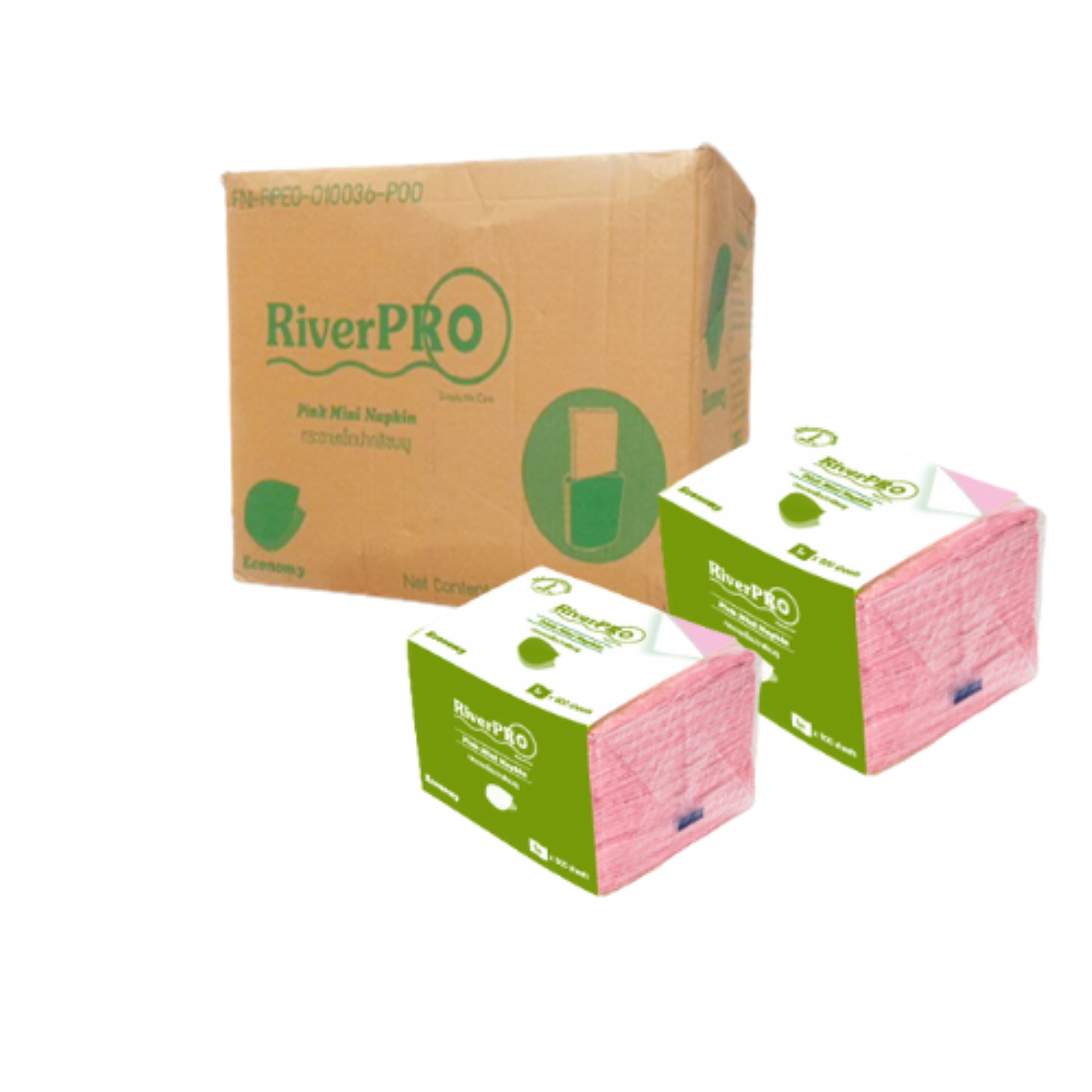 กระดาษเช็ดปาก Riverpro แน๊ปกิ้น สีชมพู 500แผ่น*36ห่อ ยกลัง