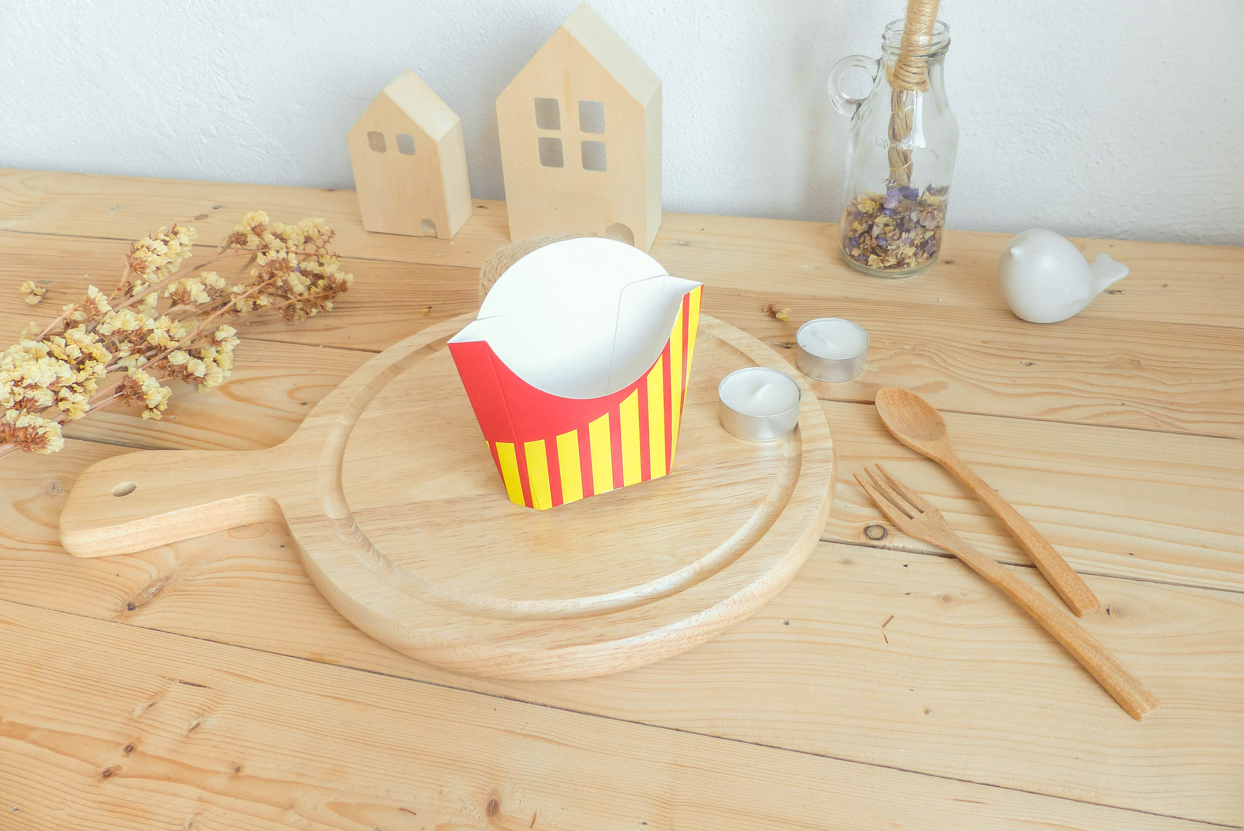 French fries, size S, french fries - White art card paper, food grade, french fries print - Size 4.1 x length 11.5 x height 12 cm. - For frying food, french fries, fried potatoes, fried onions, fried meat balls