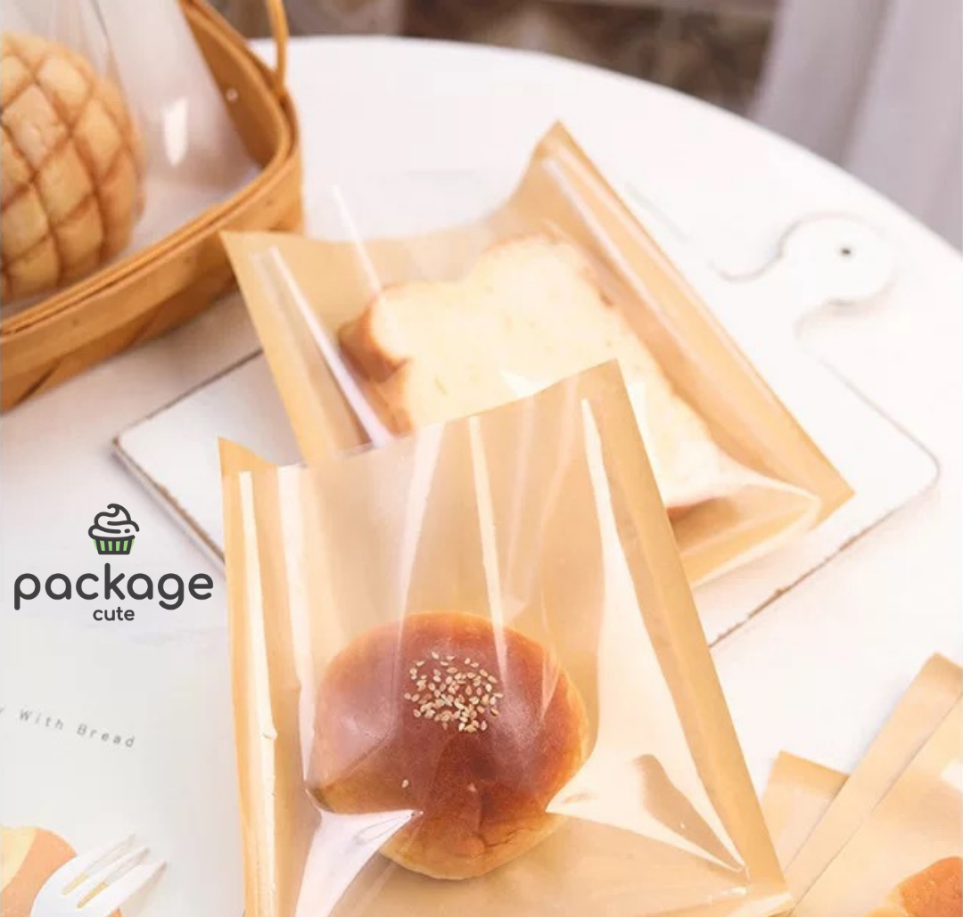Package Cute Package Cute ถุงขนมปังหน้าใส ถุงใส่ขนม คราฟท์ ใหญ่ แพค20ใบ