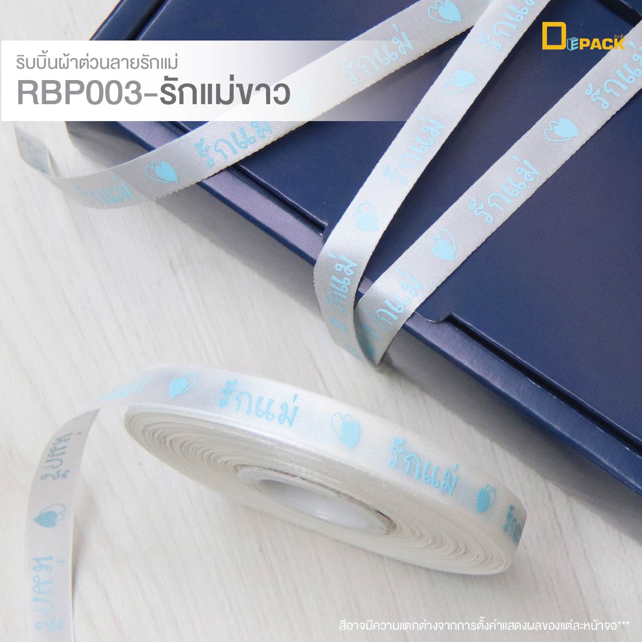 ดีแพ็ค ริบบิ้นผ้าต่วนพิมพ์ลาย รักแม่ขาว RBP003-LMW