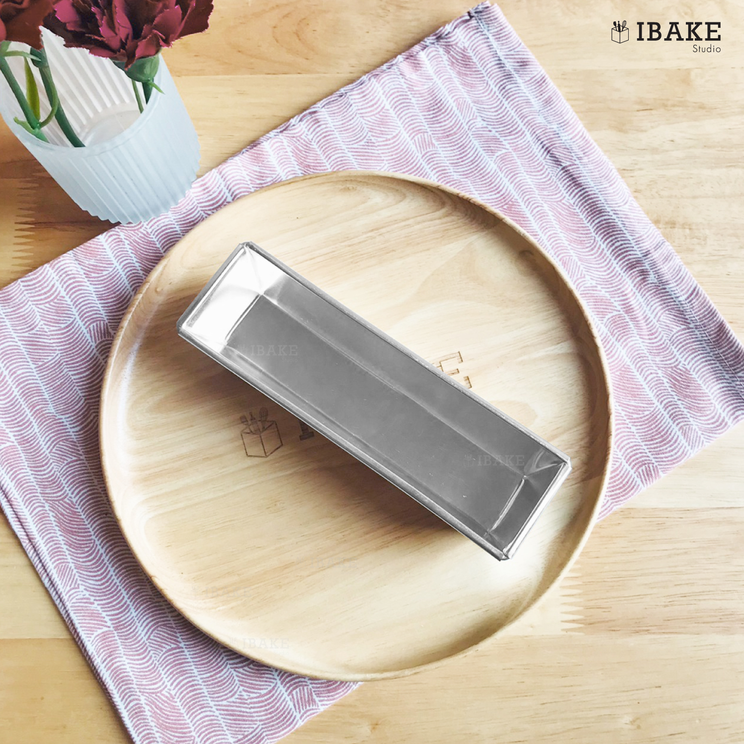 วัสดุ : อลูมเนียมไร้รอยต่อ ขอบเอียง น้ำหนักเบา คุณสมบัติ : ใช้ทำขนมปังกะโหลก วัดด้านนอกขนาด : 19cm. x 5.8 cm. x 4 cm. วัดด้านในขนาด : 18cm. x 4.9 cm.x 4 cm. ขนาดฐาน 16.5cm. x 3.2cm.