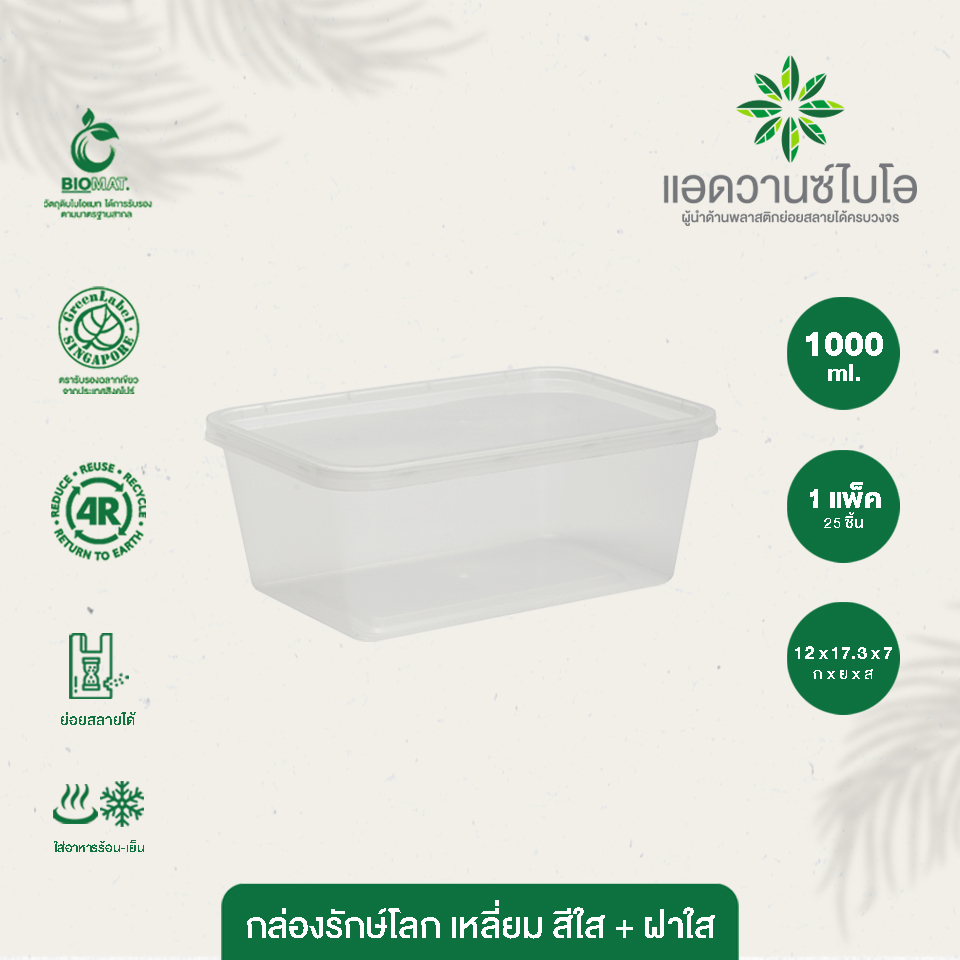 - ผลิตจากวัสดุ Bio mat - ความจุ 1000 มล. - บรรจุ 25 ชิ้น / 1 แพ็ค