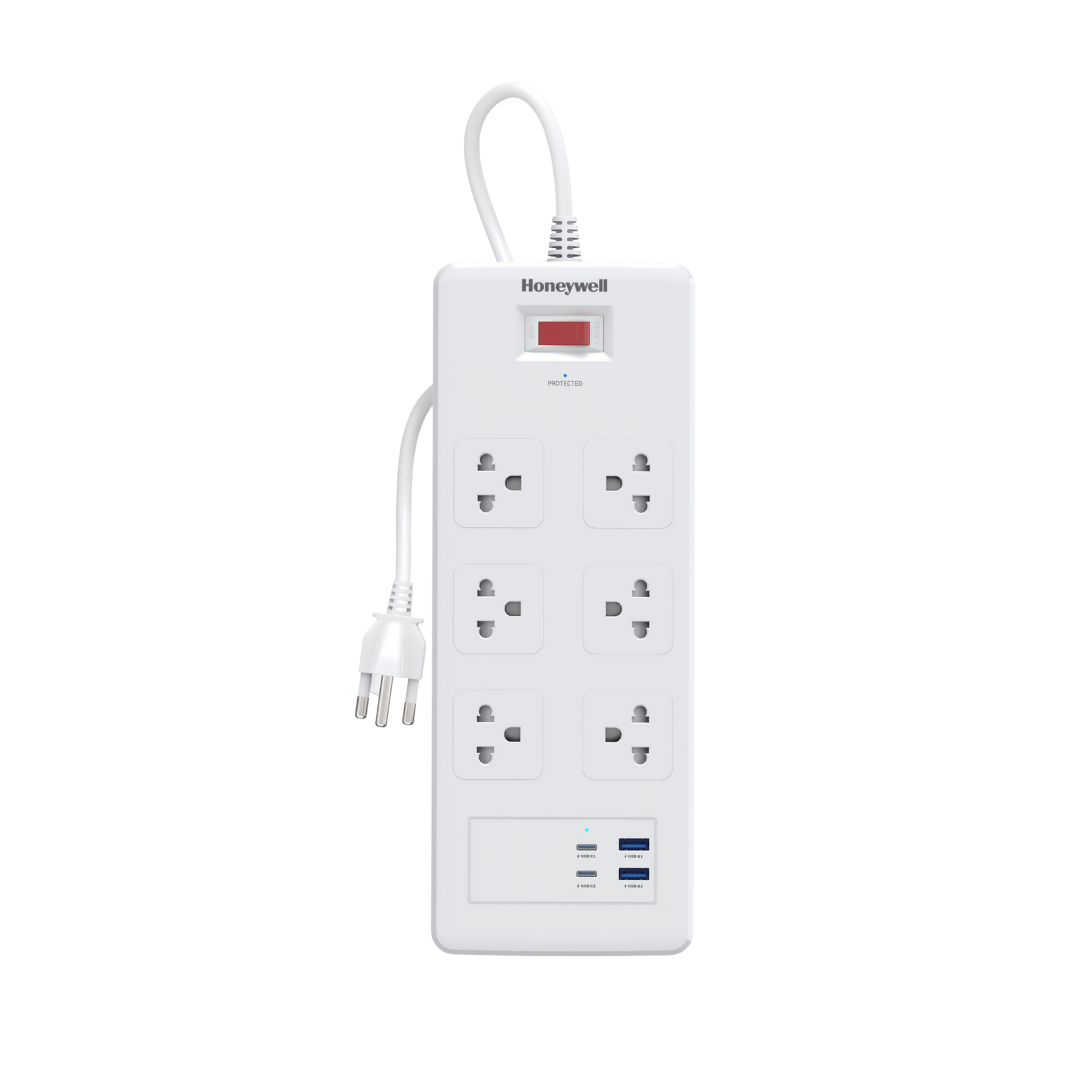 Honeywell ปลั๊กรางไฟป้องกันไฟกระชากแบบ 6 ช่อง พร้อมช่องเสียบ USB-A และ USB-C รุ่น HC000048