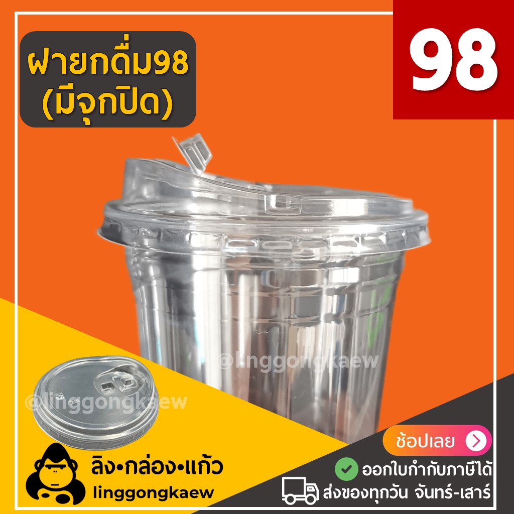 ลิงกล่องแก้ว ฝาปาก 98 ฝายกดื่ม มีจุกปิด ฝาแก้วพลาสติก PET ฝาปิดแก้วพลาสติก [ยกลัง 1000 ใบ]
