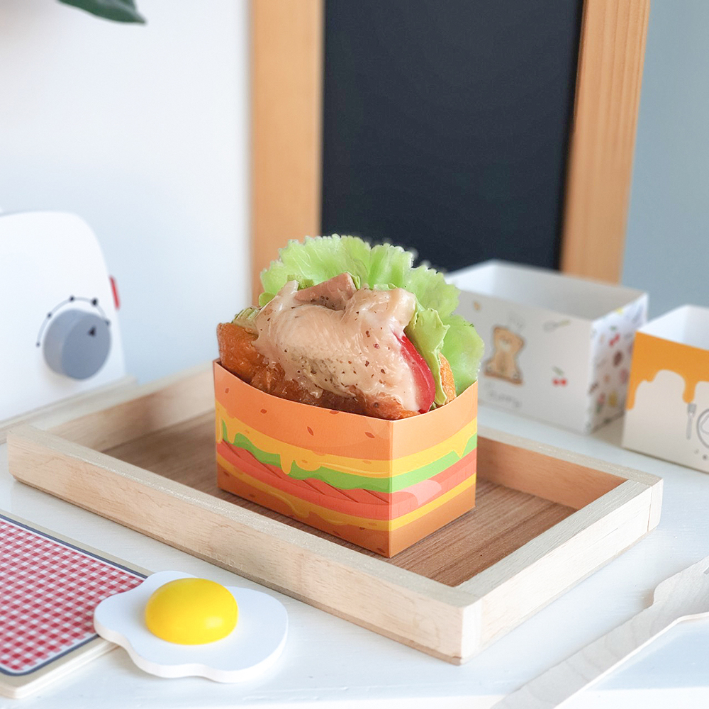 Bread sandwich box - Food grade art card paper printed with bread - Size width 6 x length 10 x height 6 cm - For adding hamburger bread sandwich, etc.