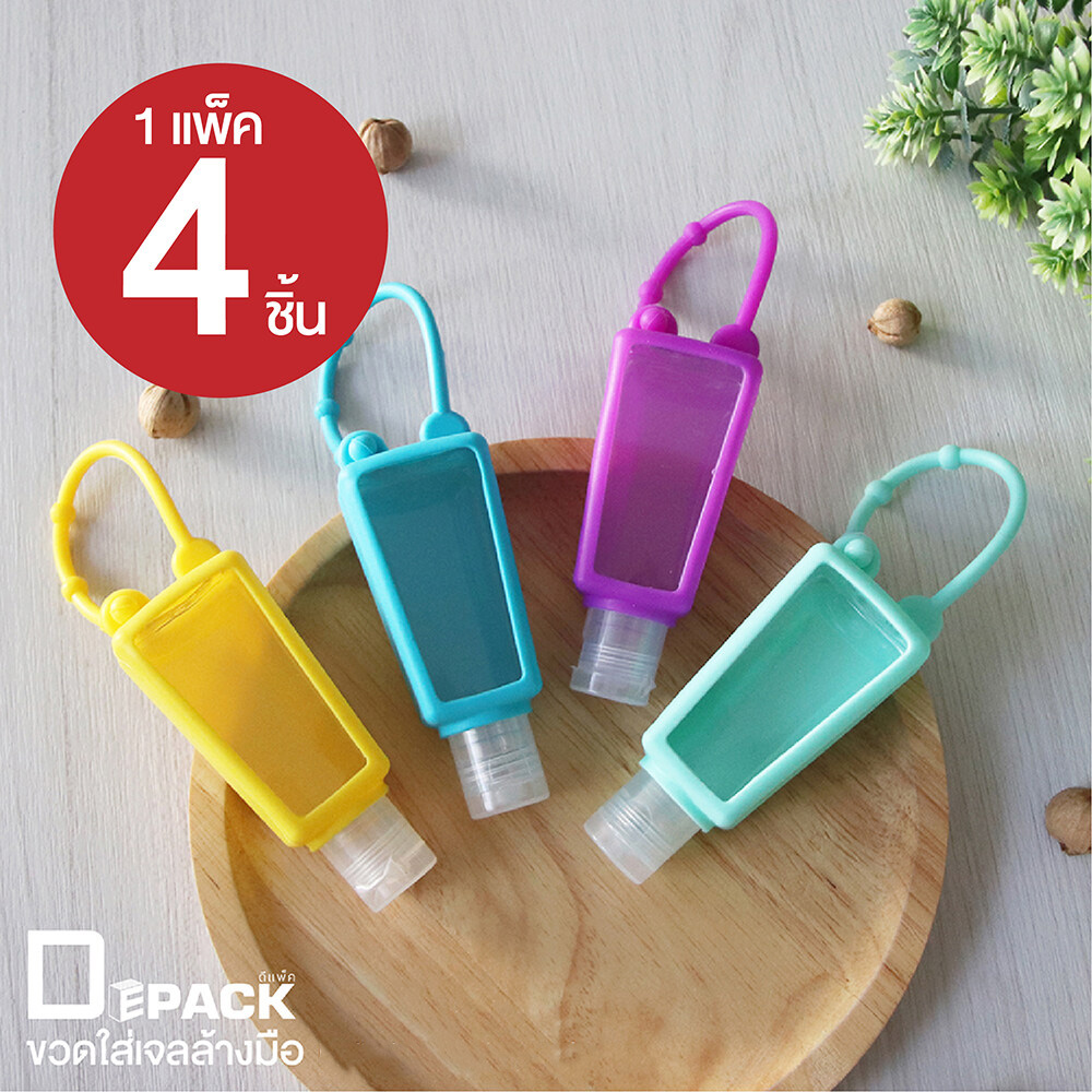 Depack PET(GEL)-Y4(สีเหลือง 4 ชิ้น) ขวดใส่เจลล้างมือหุ้มซิลิโคน ขนาด 30 ml ไม่คละสี (4 ชิ้น/1แพ็ค)