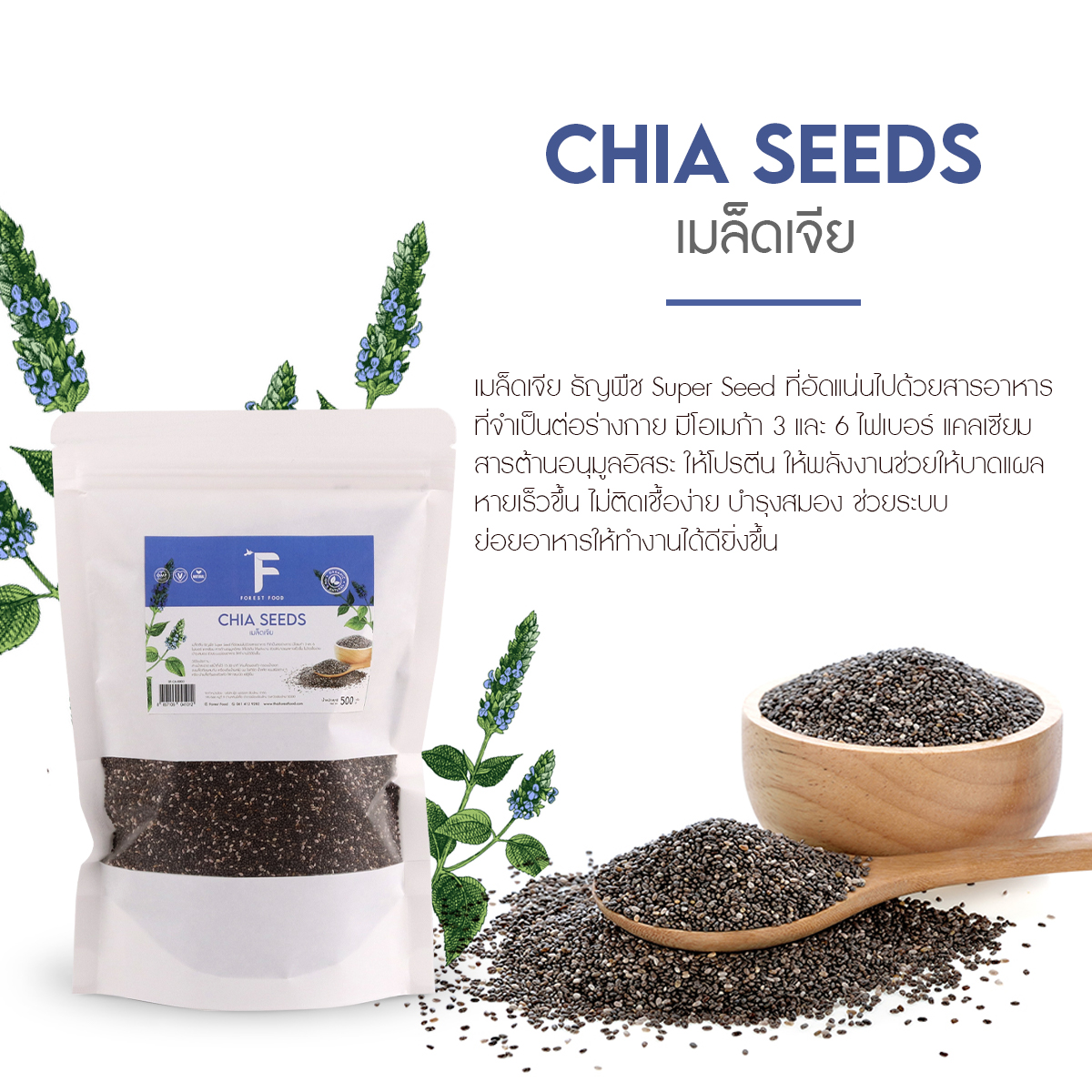 เมล็ดเจีย (Chia seeds) ธัญพืช Super Seed ที่อัดแน่นไปด้วยสารอาหาร ที่จำเป็นต่อร่างกาย มีโอเมก้า 3 และ 6 ไฟเบอร์ แคลเซียม สารต้านอนุมูลอิสระ ให้โปรตีน ให้พลังงาน ช่วยให้บาดแผลหายเร็วขึ้น ไม่ติดเชื้อง่าย บำรุงสมอง ช่วยระบบย่อยอาหาร ให้ทำงานได้ดียิ่งขึ้น วิธีรับประทาน : ล้างน้ำสะอาด แช่น้ำทิ้งไว้15-30 นาที ให้เมล็ดพองตัว กรองน้ำออก ชงเมล็ดเจียผสมกับ เครื่องดื่มน้ำผลไม้ นม โยเกิร์ต น้ำสลัด แยมชนิดต่าง ๆ หรือ นำ เมล็ดที่พองตัวแล้ว ใส่ภาชนะปิด แช่ตู้เย็น