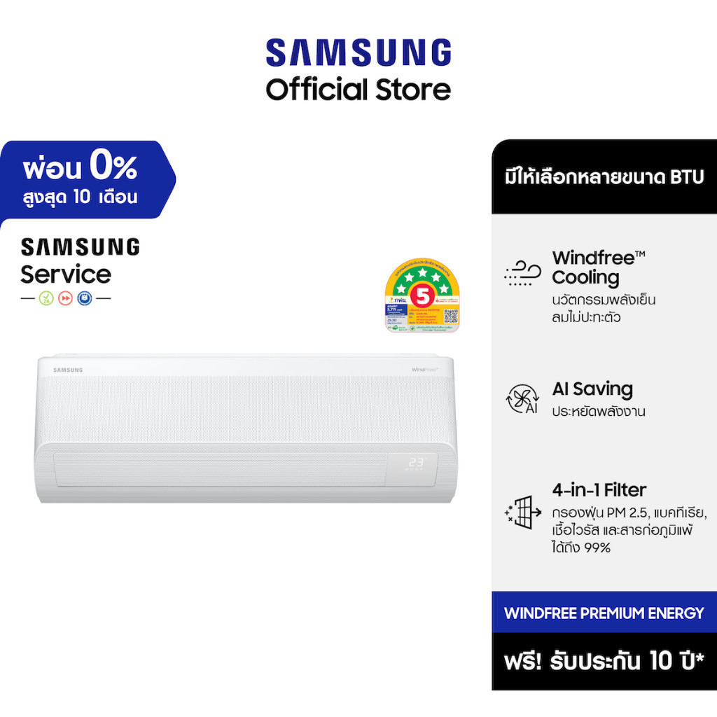Test ห้ามซื้อ[จัดส่งฟรีพร้อมติดตั้ง] SAMSUNG เครื่องปรับอากาศ WindFree™ Premium Energy, มีให้เลือกหลายขนาด BTU