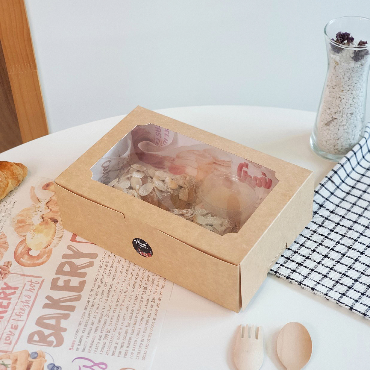 Kitchen box/Craft cake box - Food grade paper, craft color, not printed - Size width 15 x length 22 x height 7 cm. - For baking, such as cakes, kitchens, cookies, cookies, etc.