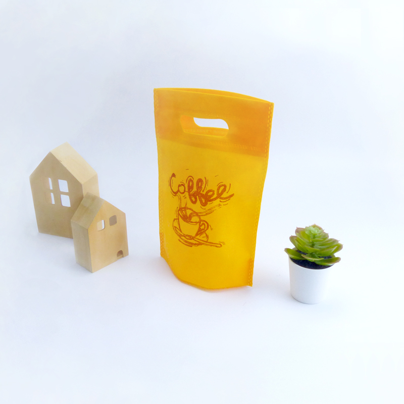 GoodBoxPack ถุงผ้าสปัน ทรงตั้ง หูเจาะ สีส้ม ลายcoffee แพ็ค 50 ใบ
