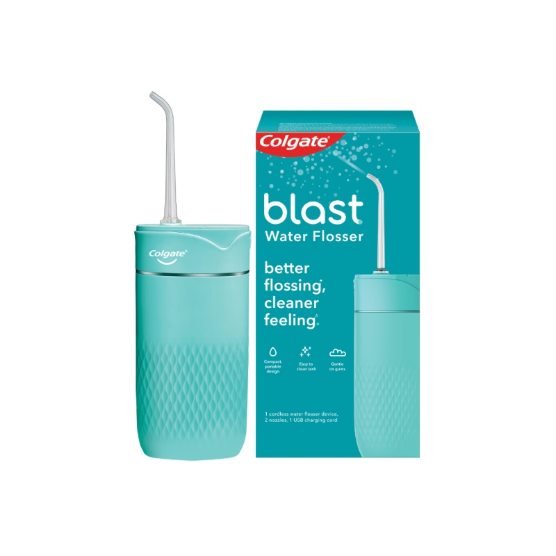 Colgate Blast Water Flosser คอลเกตไหมขัดฟันพลังน้ำพกพา หรือเครื่องพ่นน้ำทำความสะอาดซอกฟัน มีให้เลือก 2 สี สีมินท์และสีขาว