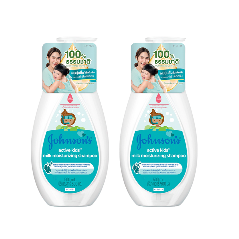 จอห์นสัน เบบี้ แชมพูเด็ก แอคทีฟ คิดส์ มิลค์ มอยส์เจอร์ไรซ์ซิ่ง แชมพู 500 มล. x2