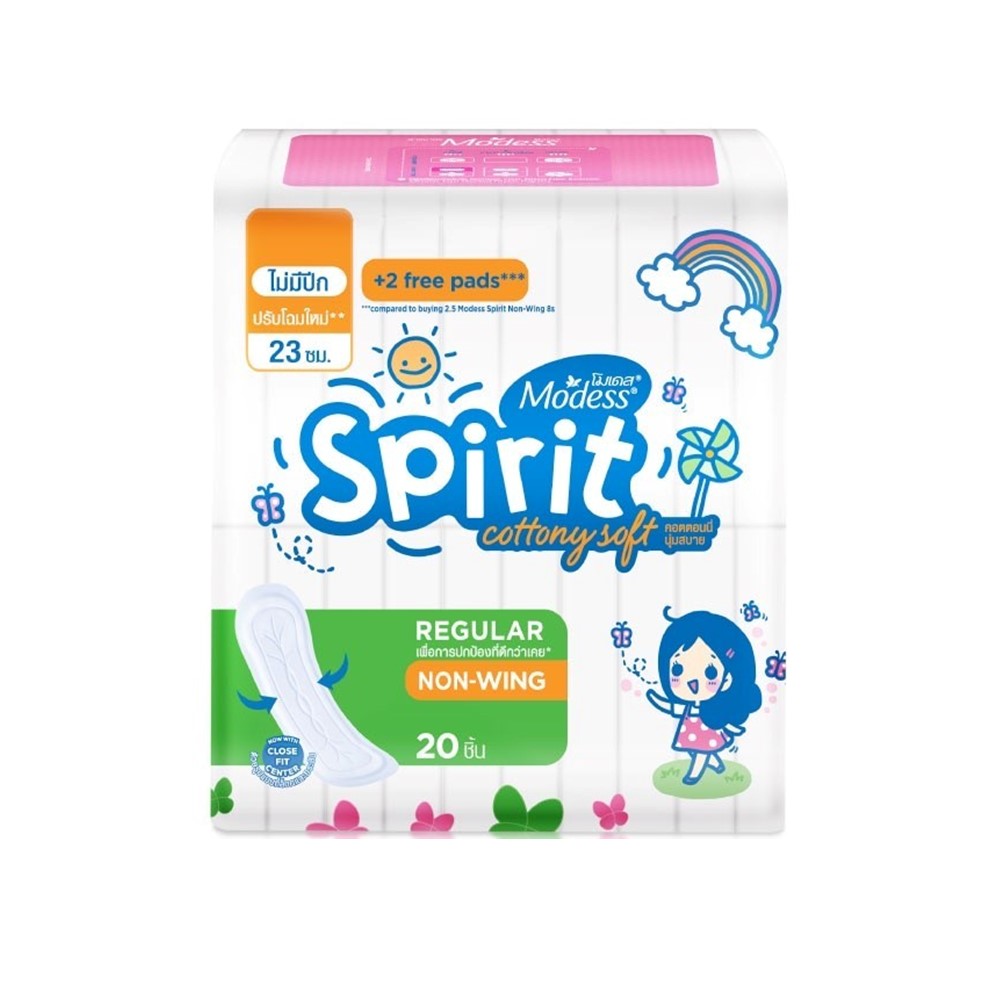 Modess โมเดส คอนตอนนี่สลิมสปิริต 20ชิ้น -แผ่นมาตรฐาน ยาว 23 ซม. - ดีไซน์ของแผ่นเพื่อการปกป้อง 360 องศา มั่นใจทุกการเคลื่อนไหว หมดกังวลเรื่องซึมเปื้อน - ผิวหน้าคอตตอนนี่ซอฟท์ สัมผัสนุ่มสบายดุจใยไหม - สะอาดสดชื่นยาวนานด้วย สเตย์เฟรช™ สารสกัดธรรมชาติที่ช่วยขจัดกลิ่น - แห้งโปร่งสบายด้วย ผิวหน้าเทอร์โมคอนโทรล ช่วยระบายความร้อนอับชื้น ผ้าอนามัยยกแพค,ผ้าอนามัยแผ่นเล็ก,แผ่นอนามัย,ผ้าอนามัย,ผ้าอนามัยโมเดส,โมเดส,