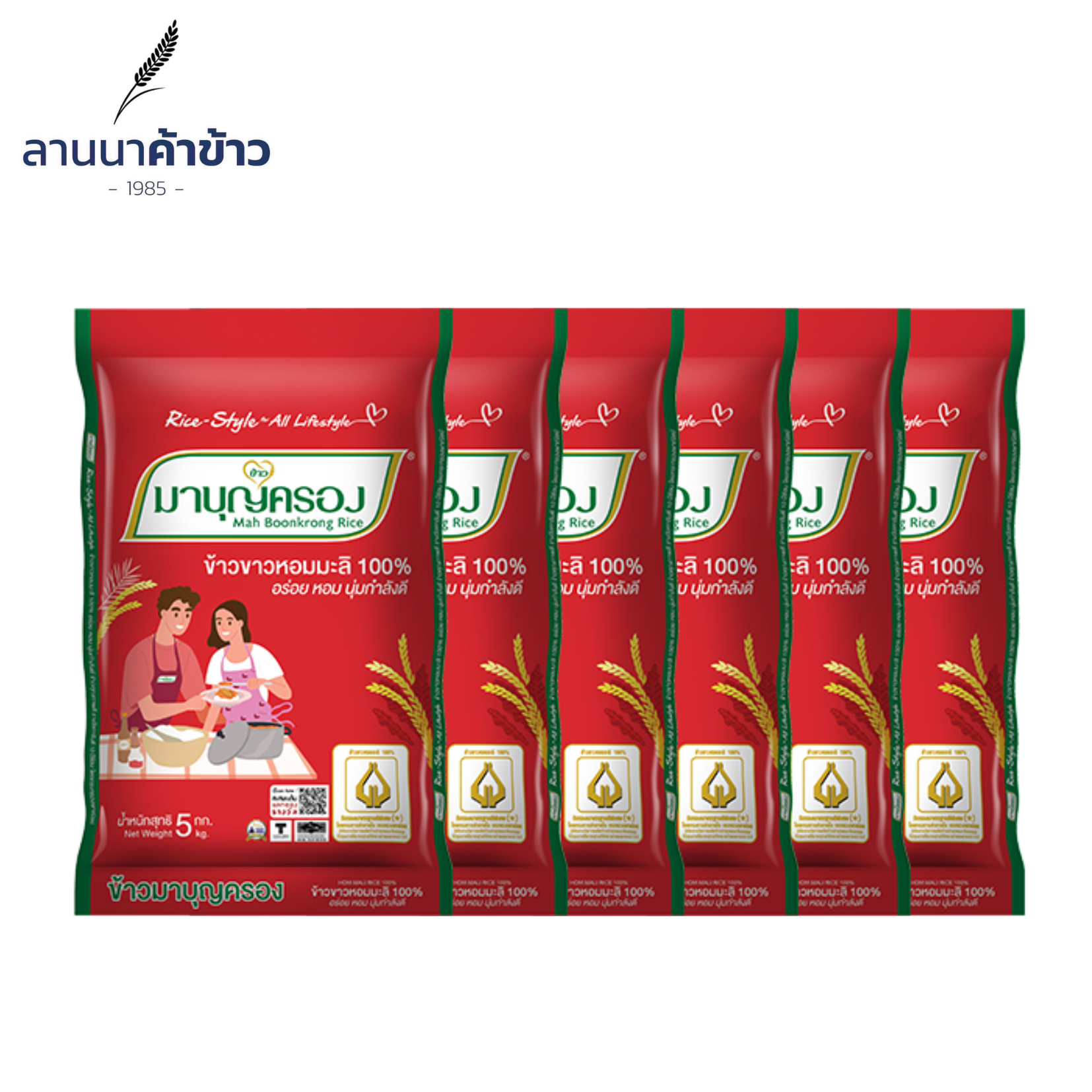 มาบุญครอง ข้าวหอมมะลิเเท้ 100% 5 กก. x 6 ถุง