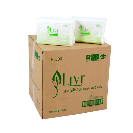 Livi กระดาษเช็ดมือ หนา 1 ชั้น บรรจุ 300 แผ่น x 24 แพ็ค