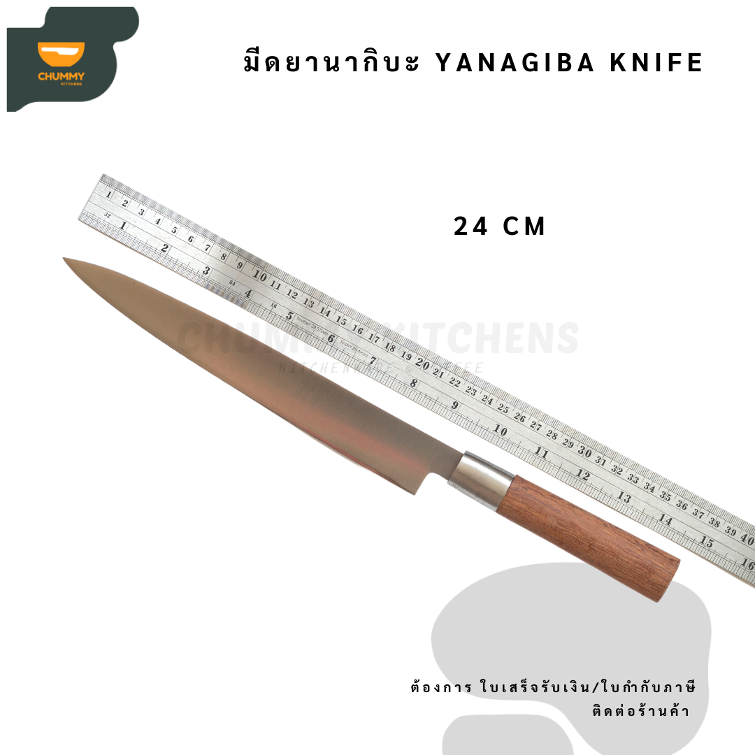 Chummy Kitchen มีดยานากิบะ ด้ามไม้แท้สีแดง มีดแล่ปลา (YANAGIBA KNIFE) มีดเชฟญี่ปุ่น 24 cm