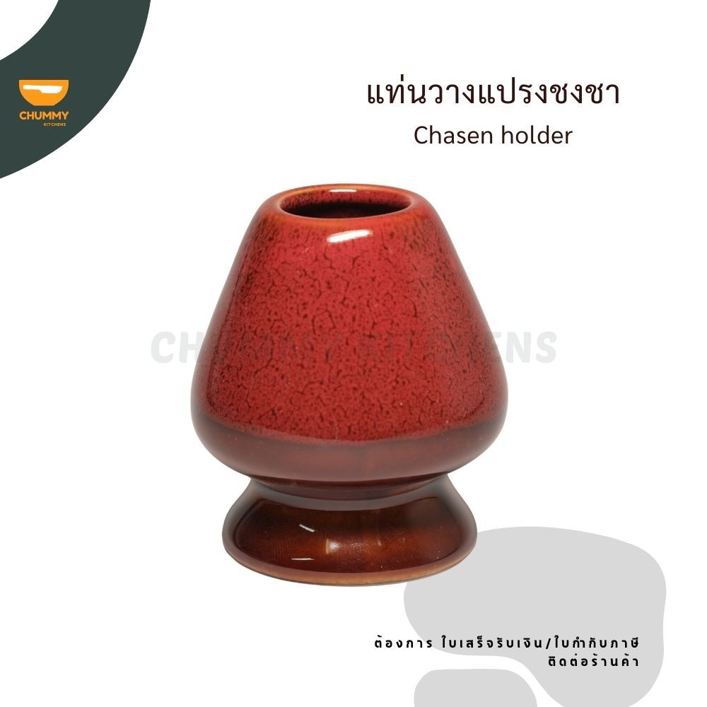 Chummy Kitchen แท่นวางแปรงไม้ไผ่ แท่นมัทฉะ แท่นวางแปรงมัทฉะ ที่วางแปรงชงชา อุปกรณ์ชงชา ที่วางแปรงไม้ไผ่ แปรงมัทฉะ ลายแดง