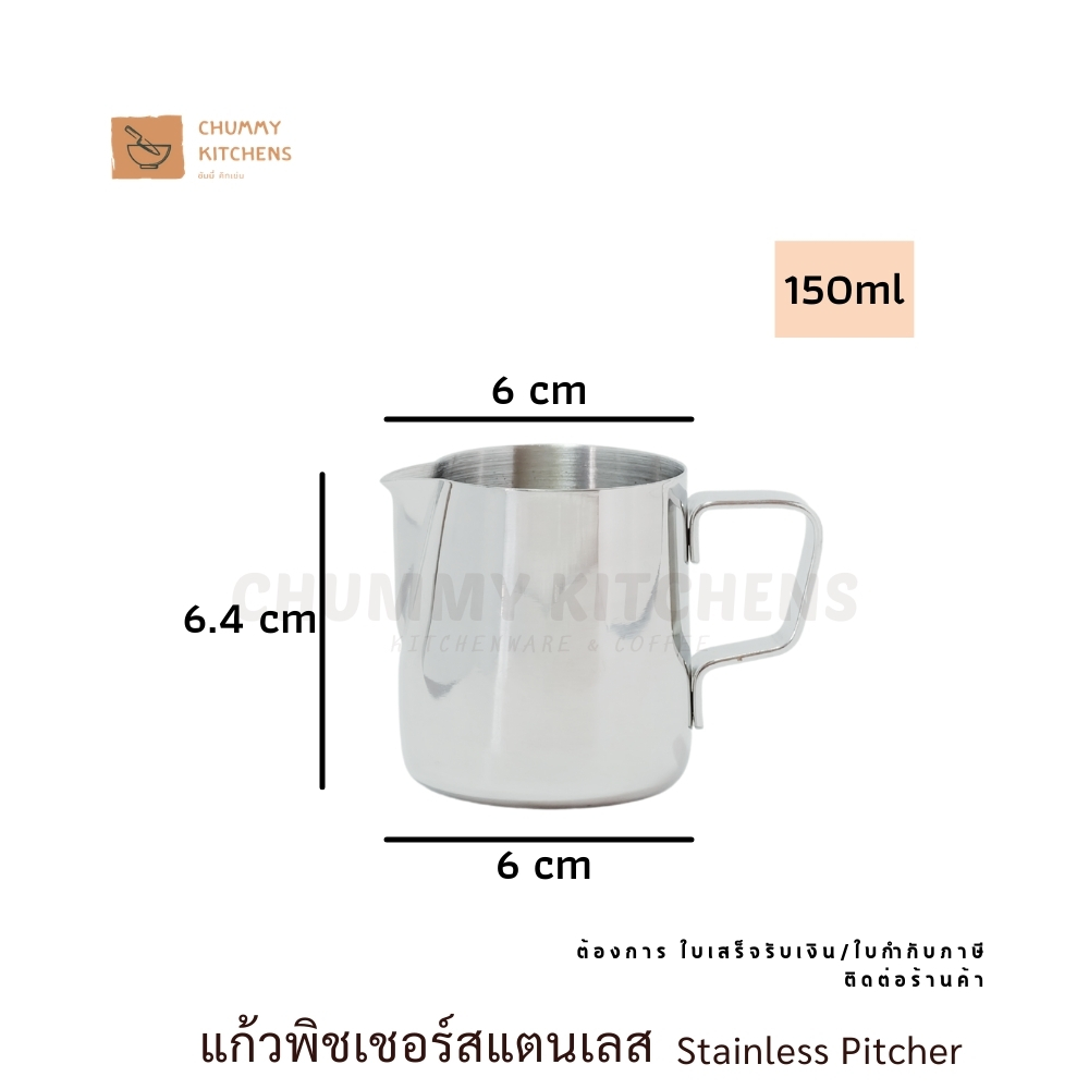 Chummy Kitchen Pitcher พิชเชอร์ แก้วสแตนเลส ใช้สตรีมฟองนม ทำลาเต้อาร์ต 150ml,ไม่มีสเกล