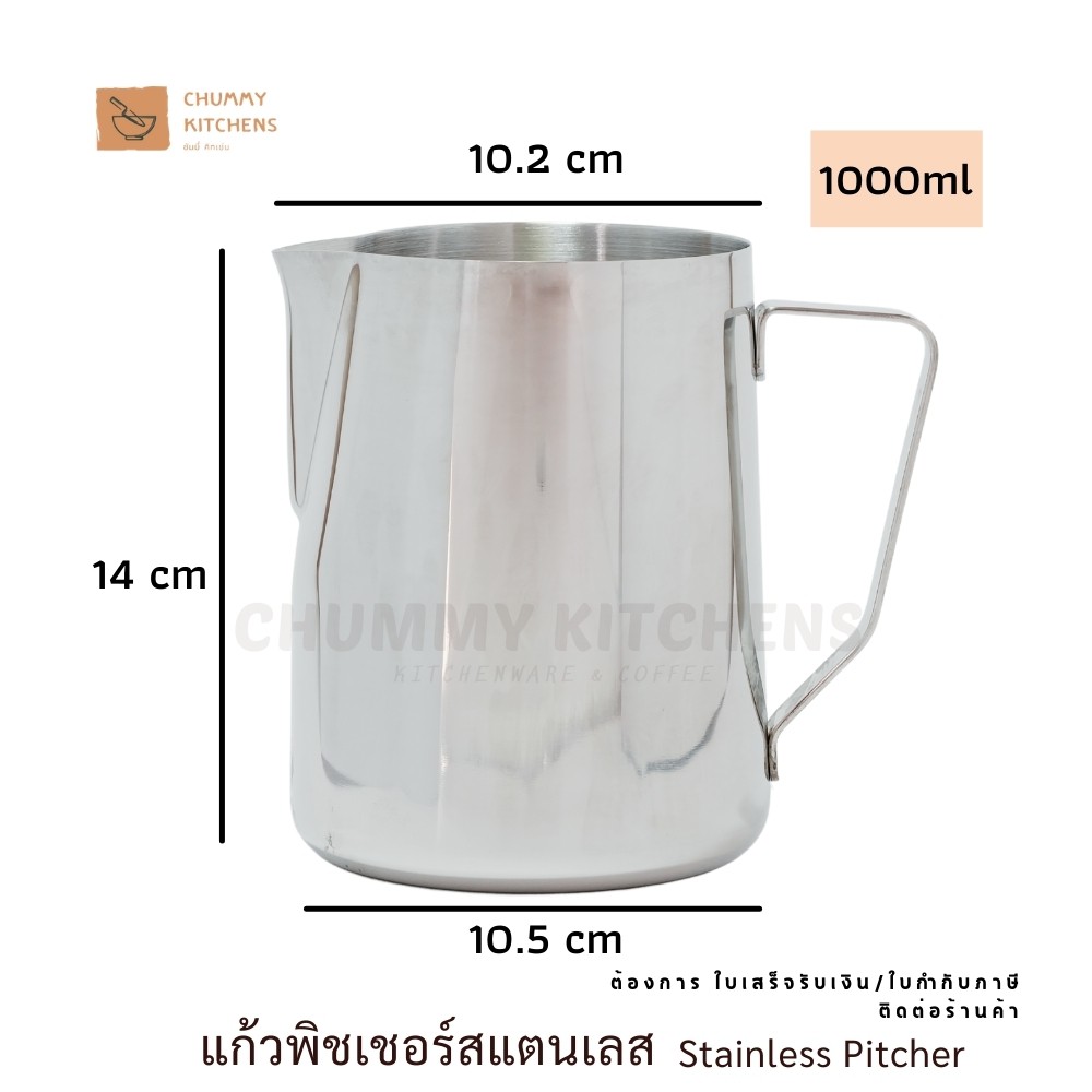 Chummy Kitchen Pitcher พิชเชอร์ แก้วสแตนเลส ใช้สตรีมฟองนม ทำลาเต้อาร์ต 1000ml,ไม่มีสเกล