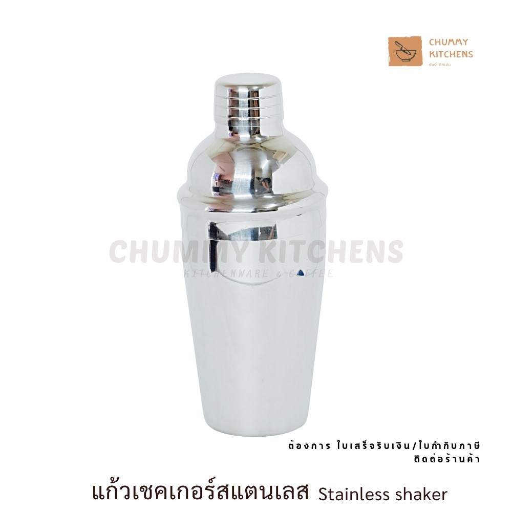 แก้วเชคสแตนเลส เชคเกอร์ สำหรับผสมค็อกเทล, ชานม หรือเครื่องดื่มต่างๆ มี 3 ขนาด ขนาด 350 ml , 550ml และ 750ml - ผลิตจากสแตนเลส แข็งแรงทนทาน ตกไม่แตก - น้ำหนัก 250g - ทนความร้อนความเย็นได้ - ประกอบด้วย ตัวกระบอก, ฝาครอบพร้อมตระแกรง และฝาปิด