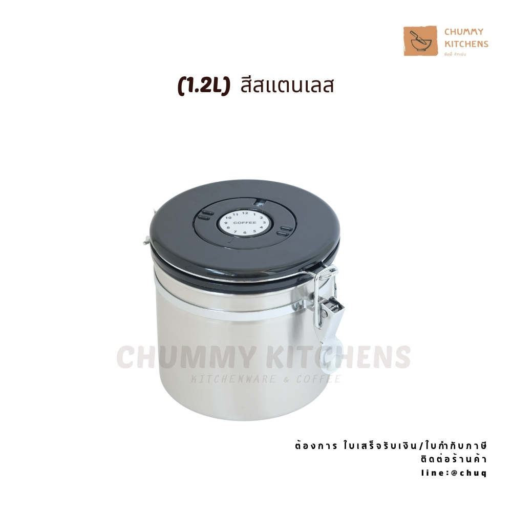 Chummy Kitchen โหลสแตนเลส โหลสูญญากาศ กล่องเก็บเมล็ดกาแฟ เมล็ดกาแฟ ที่ใส่อาหาร สแตนเลส ผงกาแฟ สูญญากาศ ชา กันความชื้น กล่องสูญญากาศ 1.2 L สีสแตนเลส