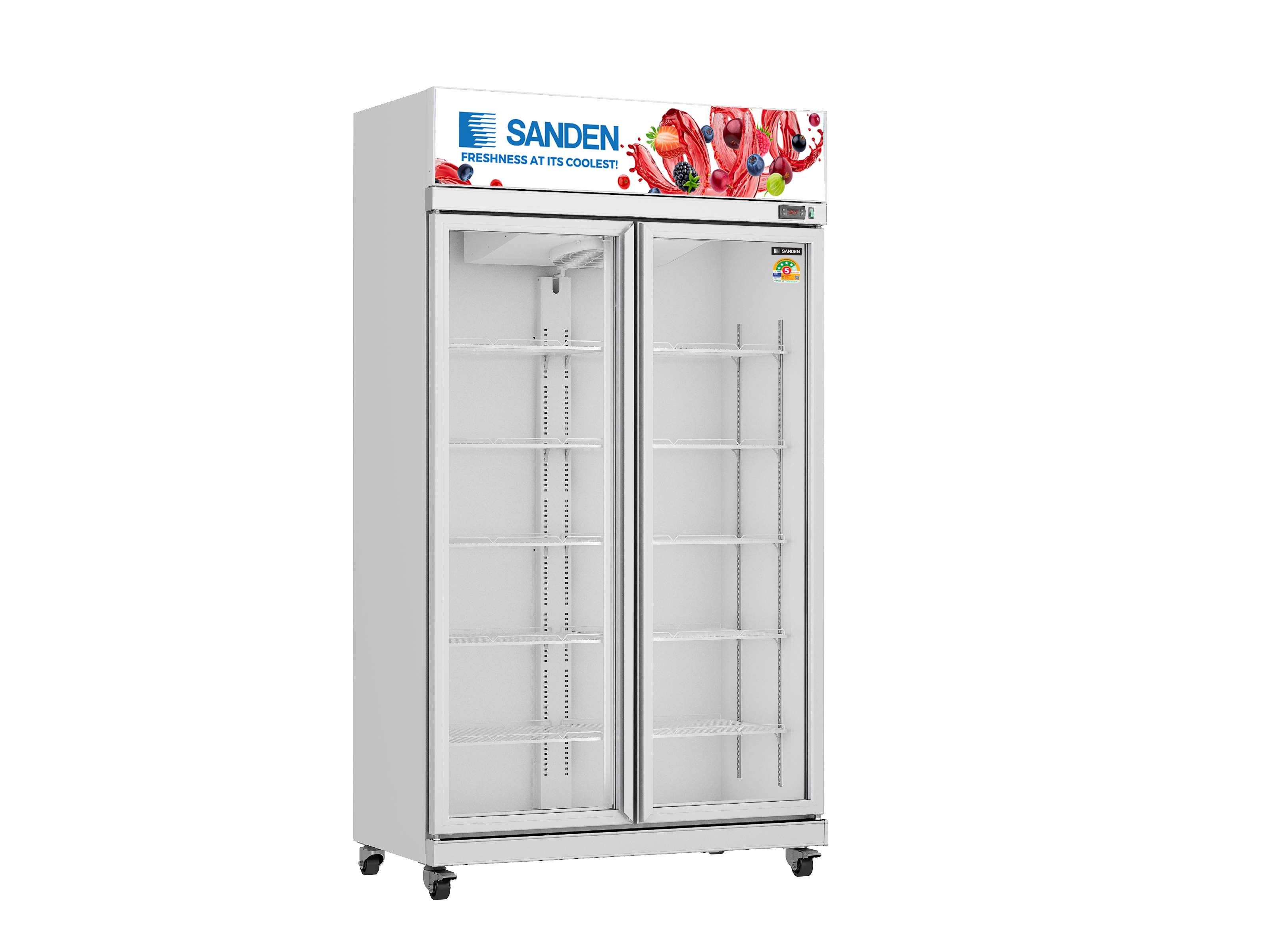 : ตู้แช่เย็น 2 ประตู ประหยัดไฟเบอร์ 5 ระบบทำความเย็นแบบไม่มีน้ำแข็งเกาะ ควบคุมความเย็นด้วยระบบ Digital Control พร้อมหน้าจอแสดงอุณหภูมิ : บานประตูบานกระจกสูญญากาศ 2 ชั้น : วัตถุดิบภายในและวัสดุพื้นตู้ภายในอลูมิเนียมเคลือบสี : อุณหภูมิความเย็น+1 ถึง +10 องศาเซลเซียส : ขาตั้ง / ล้อมีล้อเลื่อนสะดวกในการเคลื่อนย้าย