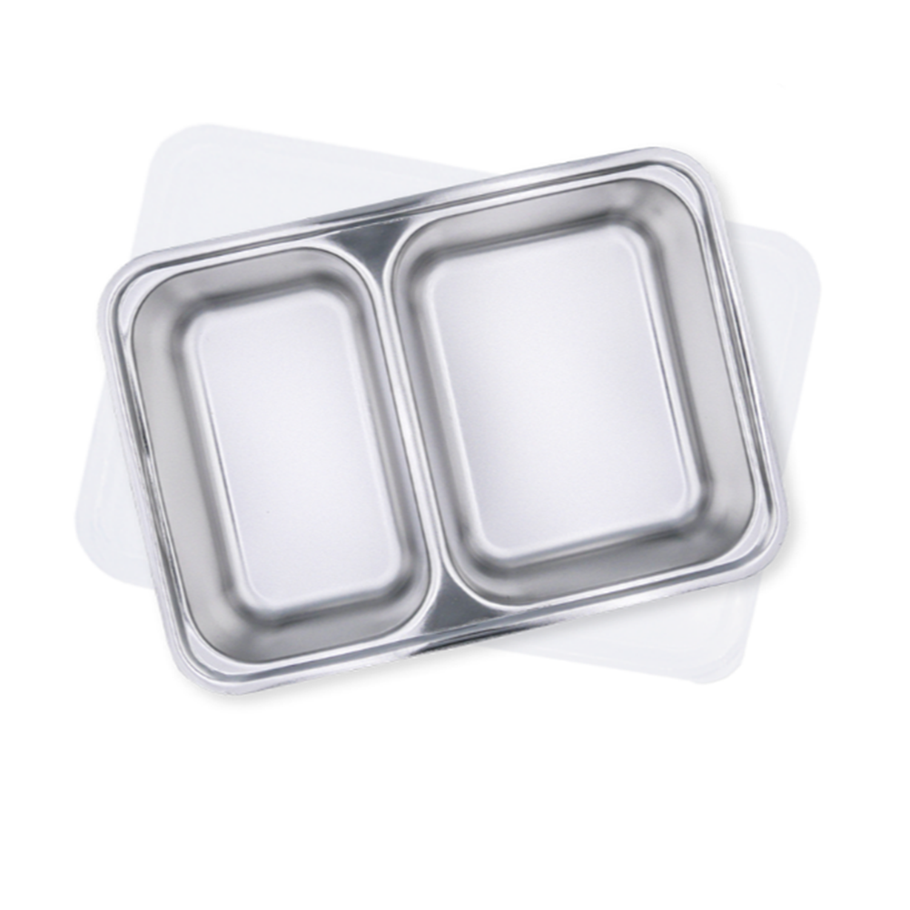 Empress World ถาดหลุมสแตนเลส 2 ช่อง ฝาปิดพลาสติก x 12