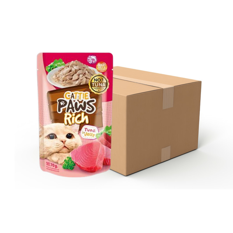 แคทตี้ พาวส์ ริช อาหารเปียกแมว รสปลาทูน่าในเยลลี่ 70 ก. x 12