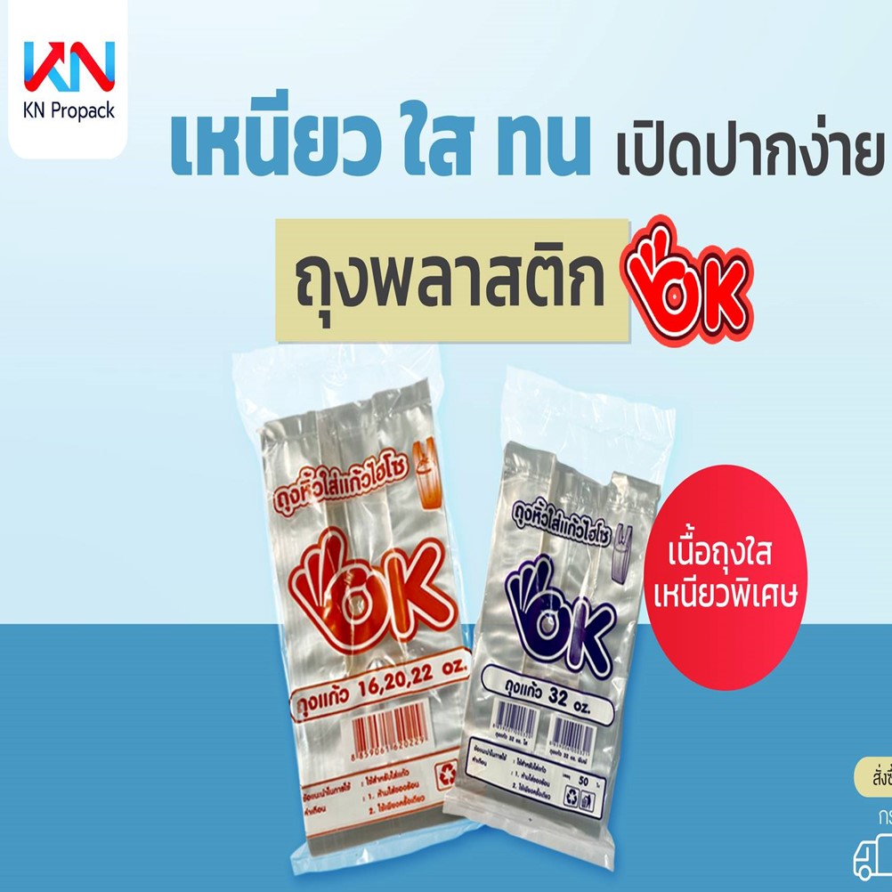 OK ถุงหิ้วใส่แก้ว ไฮโซใส ขนาด 16,20,22 ออนซ์ บรรจุ 60-70 ใบ/แพ็ค (10 มัด/ลัง)