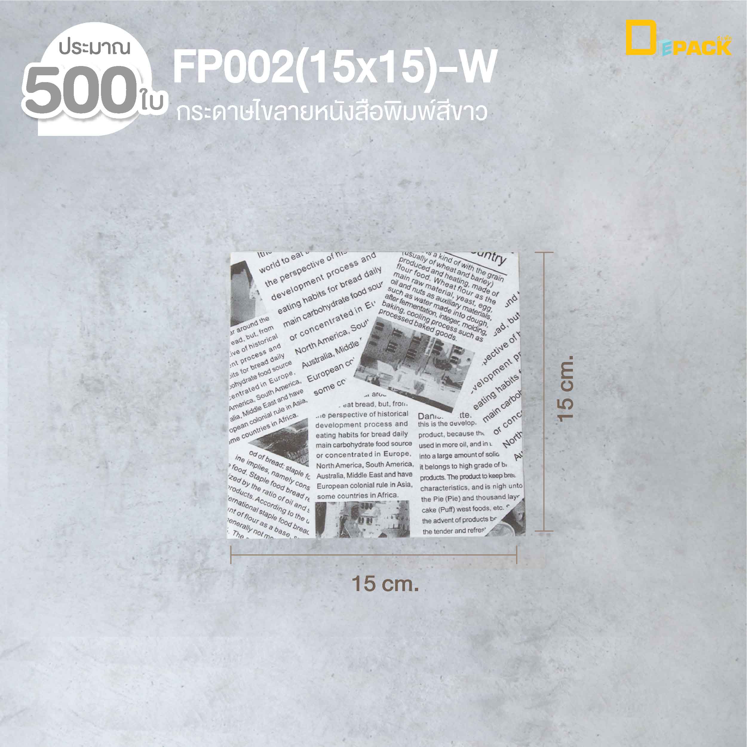 ดีแพ็ค กระดาษไขลายหนังสือพิมพ์ FP002(15x15)-W500 ขนาด 15 x 15 ซม. สีขาว ประมาณ 500 ใบ