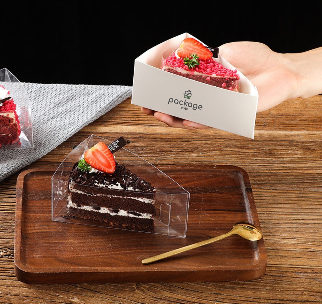 ถาดใส่เค้กสามเหลี่ยม กล่องใส่เค้ก ถาดใส่เค้กชิ้นเล็ก รุ่นกระดาษ แพค10ใบ