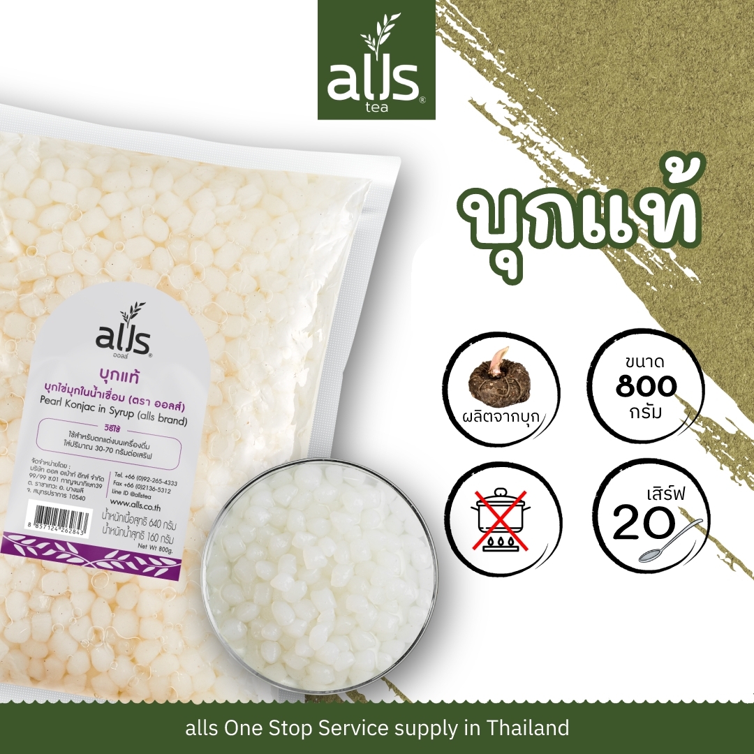 บุกแท้100%(ตราออลส์) ขนาด 800กรัม ใช้สำหรับตกแต่งบนเครื่องดื่ม ใส่ปริมาณ30-70กรัมต่อเสริฟ
